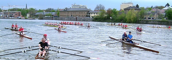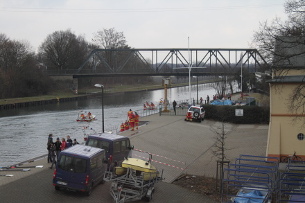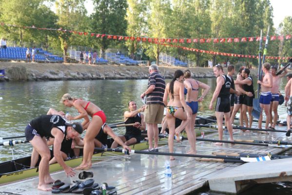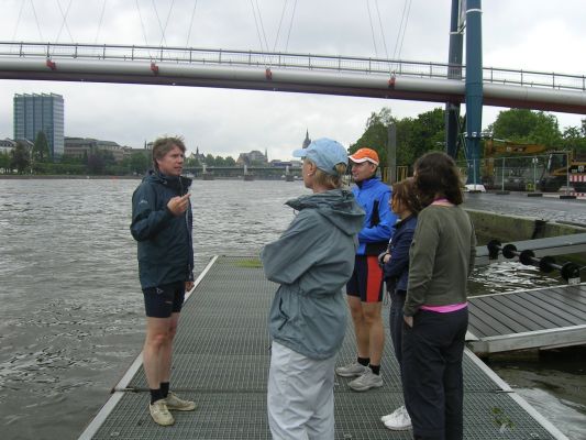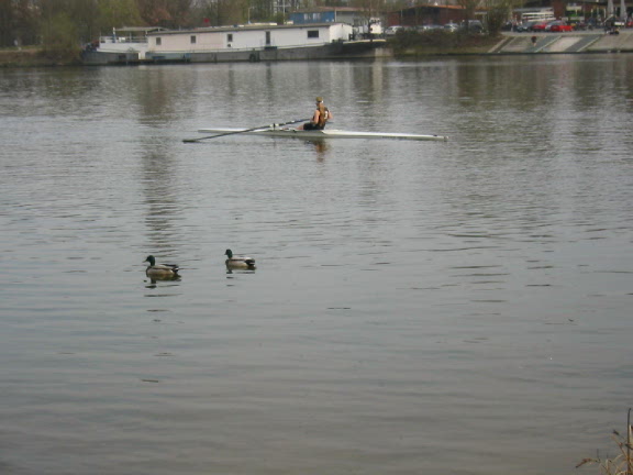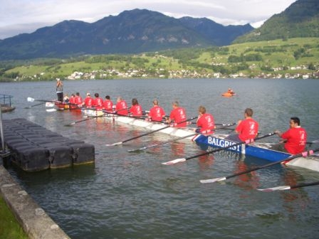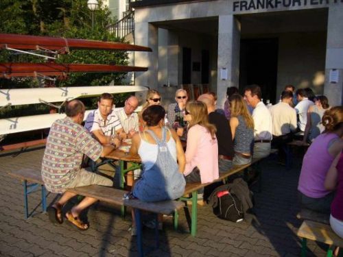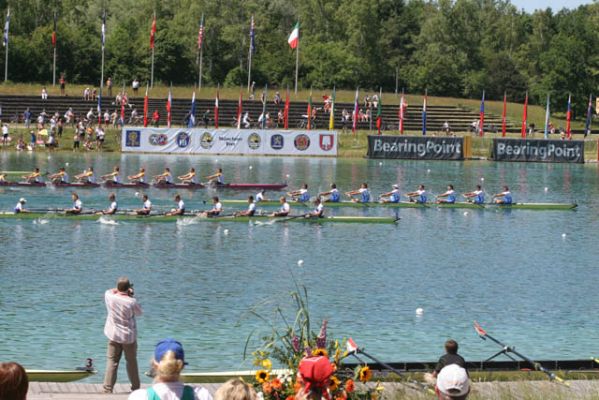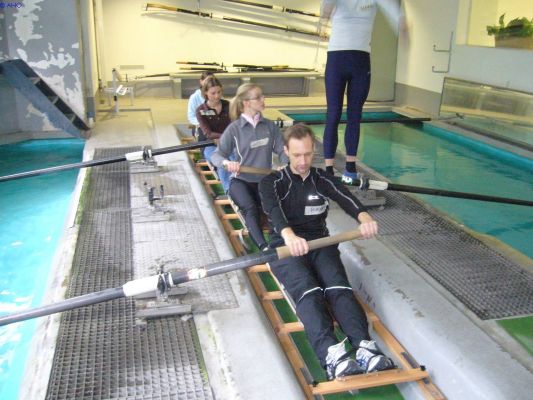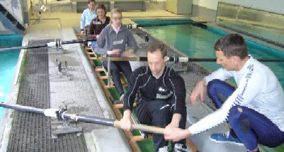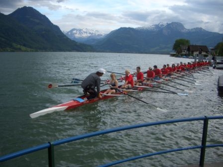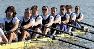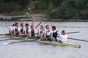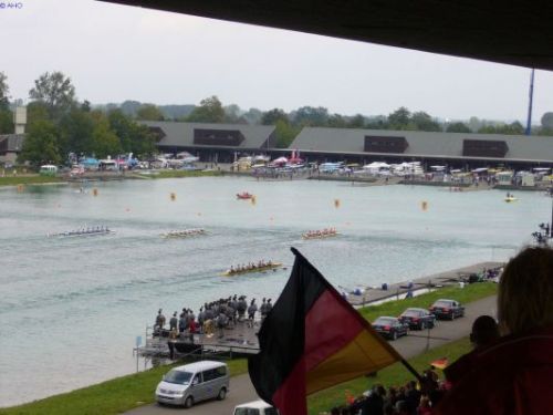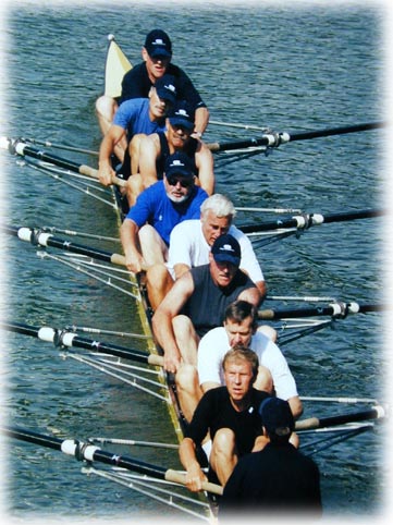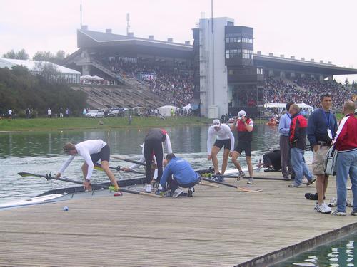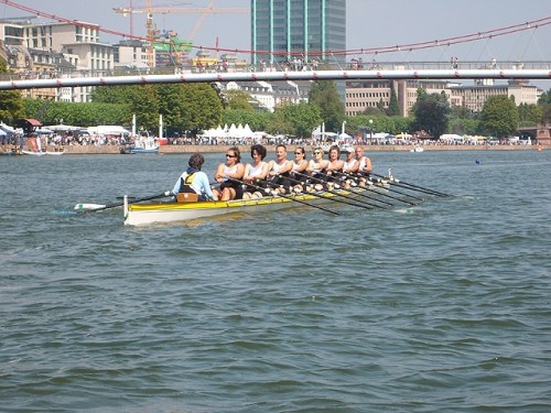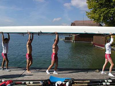1968 Mexiko Olimpiyat şampiyonu Alman Sekiz Tek ekibi 2004 yılında antrenmanda, burundan üçüncü siyah atletli Lutz Germania kürekçisi, hala veteran yarışlarına girer ve genellikle birinci olur.: