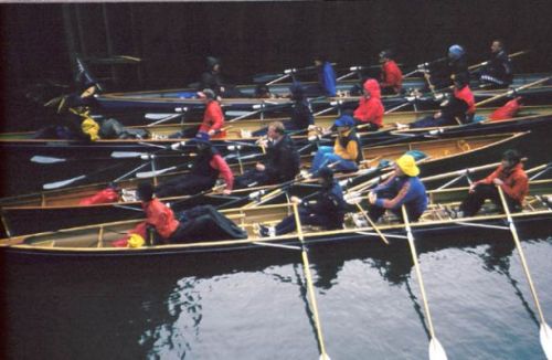 1969 yılında iki çiftede yarıştığım İsviçreli Bürgin’in 6 adet dört çifte teknesini birleştirerek yaptığı bir deneme.