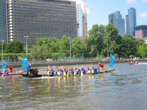 Mainz parkurunda yapılan bir yarış arasında Sekiz Tek arkasında su kayağı gösterisi.
