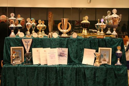 Germania kayıkhanesinin içinde kupaların durduğu bir köşe: