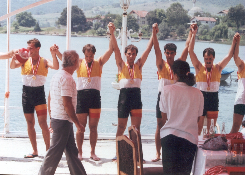 1998 Henley Regatta’da yarışan ekibimiz: Yüksel Taşcı – Yalçın Özcan – Sami Kaya – Saim Kaya – Fatih Örer – Nedrettin Şen – Ekrem Özgören – Batuhan Barutçu – DM. Can Parlak (Anrenör: Luben Golev)