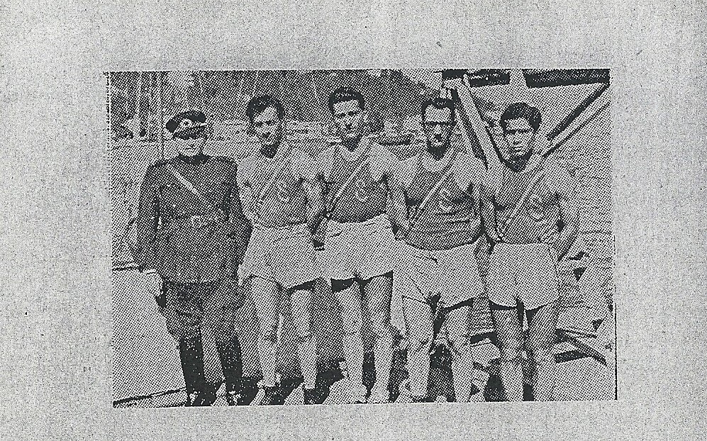 Resim: 1970 Villach Uluslar arası yarışlarında. Soldan sağa: Erdinç Karaer, Celal Gürsoy, Ahmet Şenkal, Mehmet Ayata, Dümenci Hüseyin Özer