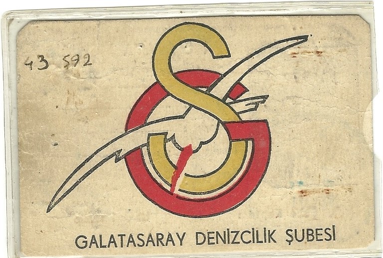 Resim: Galatasaray Kulübünün üyelerine verdiği kimliklerde görülen GS Arması ile Denizcilik Şubesinin Martılı Arması günümüzdekine göre farklılıklar taşıyordu.