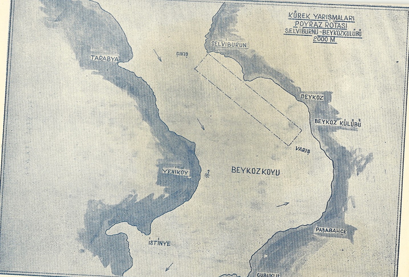 Resimler: 1956 yılında Kürek Federasyonu henüz kurulmamıştı, yarışlar resimlerde görüldüğü şekilde organize edilip yürütülüyordu. 1957 yılında Kürek Federasyonu kuruldu ve başkanlığa Eftal Nogan getirildi. Futbol ve Boks sporları ile de uğraşan Eftal Nogan 1936 ile 1933 yıllarında Altınordu takımının başarılı bir kürekçisi idi. Tek Çiftede geçilmezliğini 1933’te Galatasaray’ın efsane isimlerinden Nevin Hasan ele geçirdi. Eftal Nogan, 1936 Olimpiyatlarına gidecek olan Boks takımında yer aldı ancak sonradan bu branşta Olimpiyatlara gidilmedi. Nogan, Kürek Federasyonu başkanlığını 1974 yılında kadar devam ettirdi.