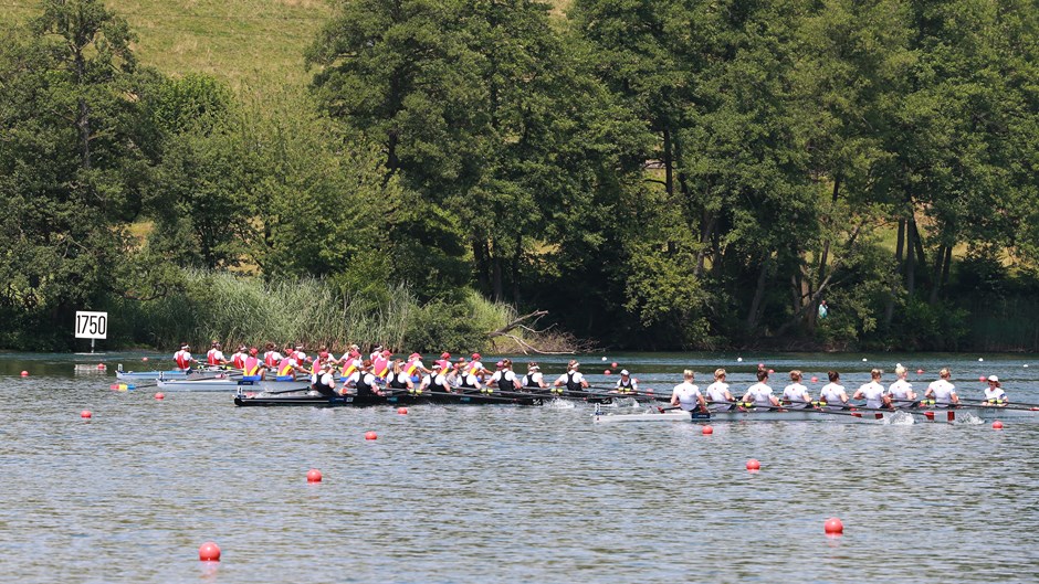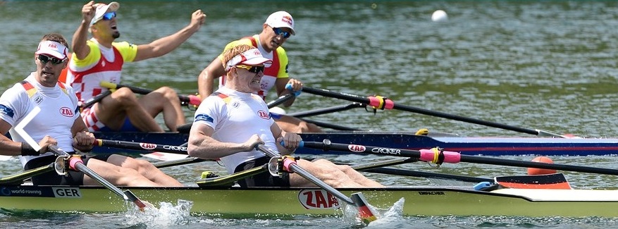 Resim: M8+ İngiltere ekibi Almanya’nın 0.8 saniye önünde yarışı bitirirken.