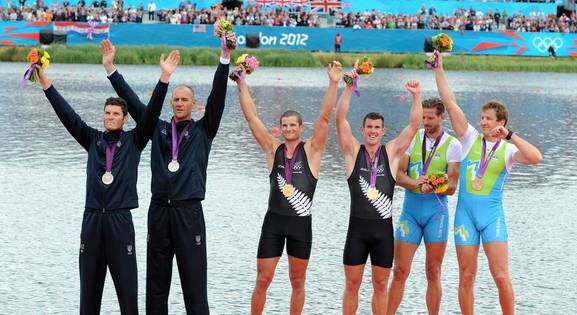 Birinci Yeni Zelanda ekibinden Nathan Cohen, aynı teknede 2010 ve 2011 Dünya Şampiyonalarını kazanmış, 2006 Dünya Üniversite oyunlarında da Altın Madalya almıştı. Partneri Joseph Sullivan, 2010 ve 2011 Dünya Şampiyonalarındaki başarıyı paylaşmış ayrıca U23 Dünya Şampiyonalarında 2007-2008’de Tek Çifte, 2009’da İki Çifte yarışlarında Altın Madalya kazanmıştır. İki sporcu da 2013 yılında Yeni Zelanda Order of Merit ödülüne layık görülmüşlerdir.