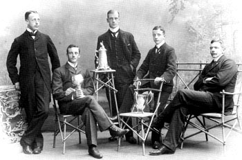 Birinci gelen Amerikalı Vesper Boat Club Philadelphia ekibi: Louis Abell, William Carr, Harry DeBaecke, John Exley, John Geiger, Edward Hedley, James Juvenal, Roscoe Lockwood, Dümenci: Edward Marsh.