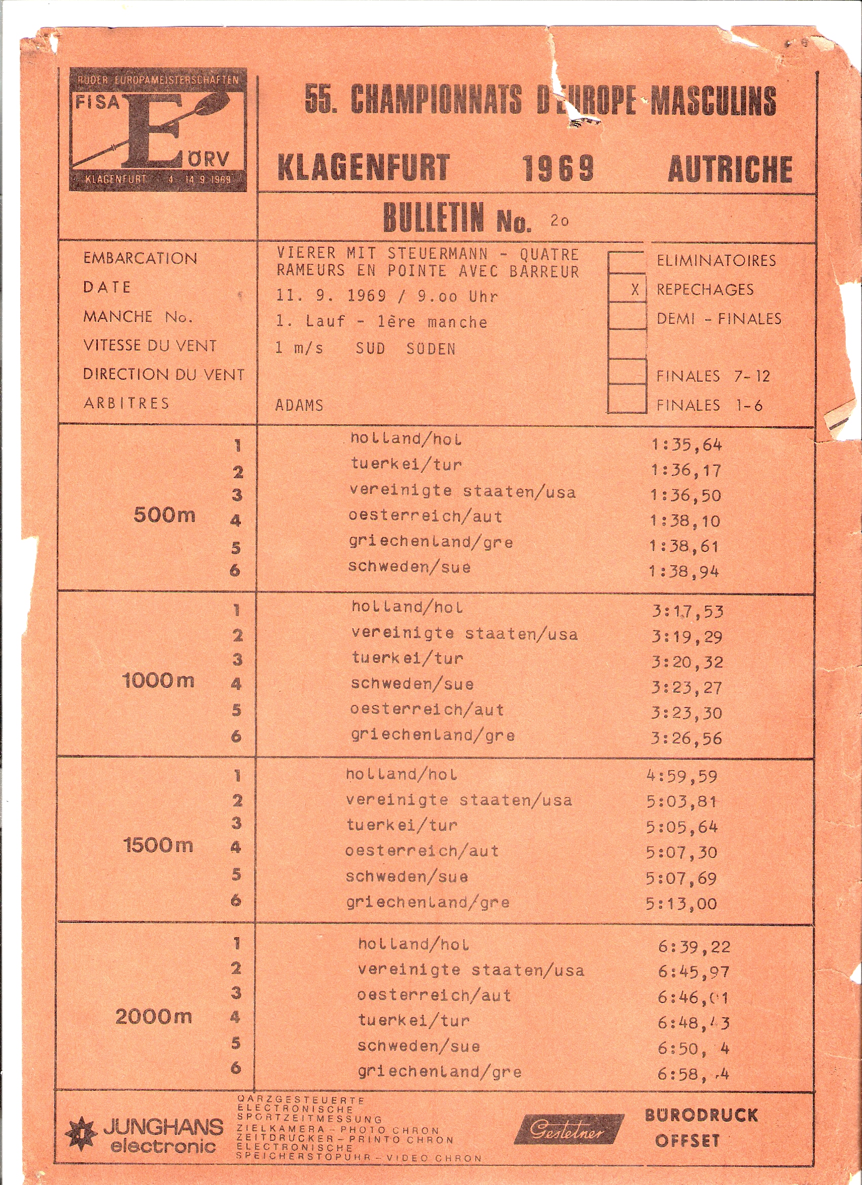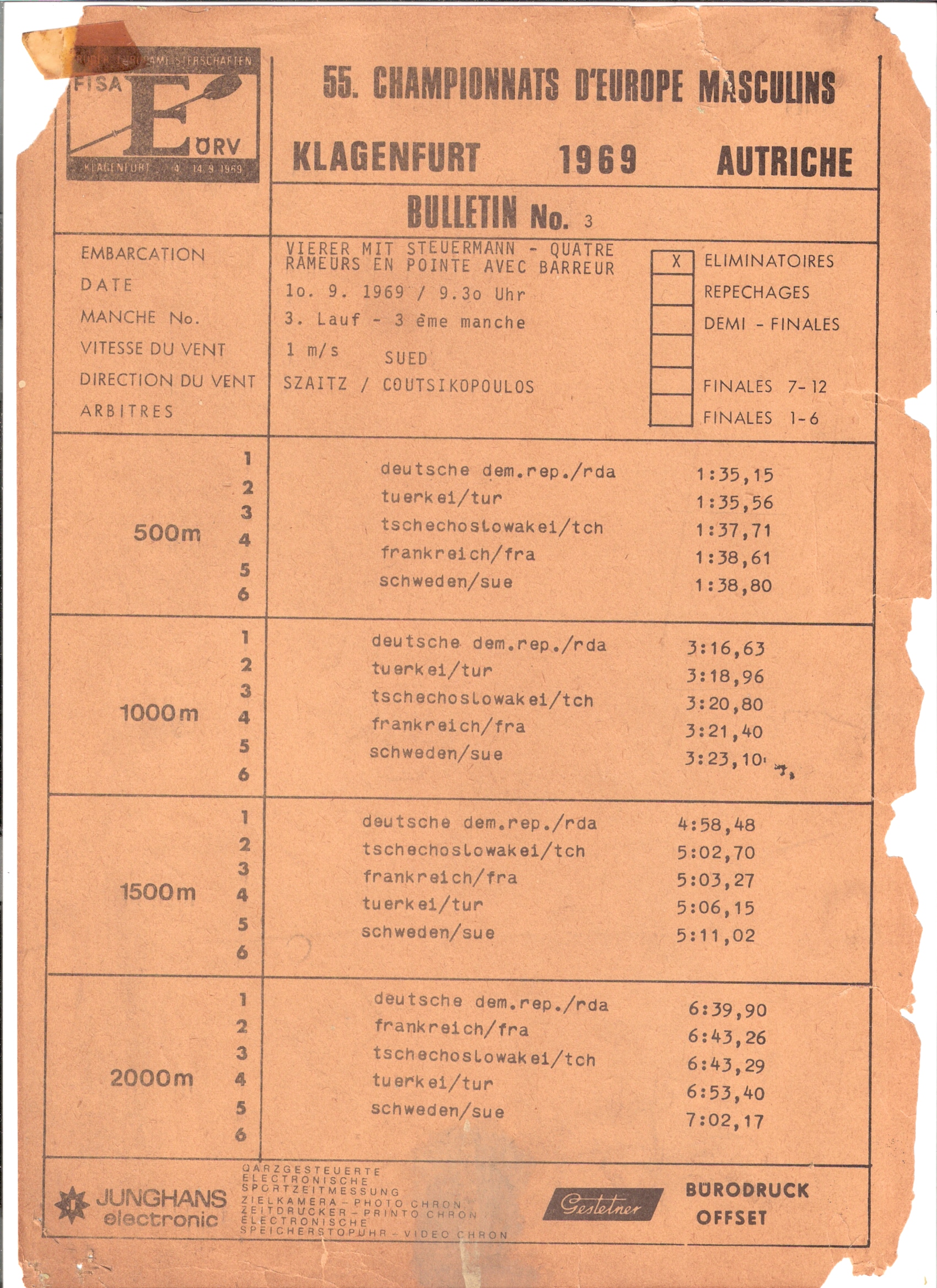 Resimler: 1969 Avrupa Şampiyonası 4+ yarış bültenleri