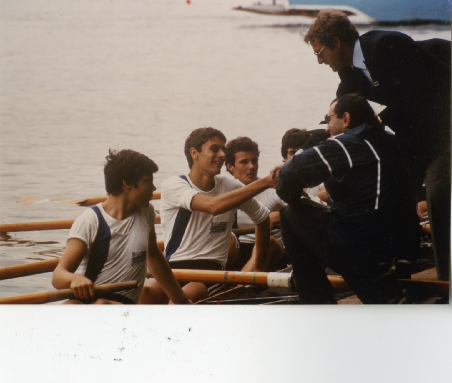 Resim: Almanyadaki ilk önemli sınavım olan 1980 Giessen Kupasını kazanan Germania Sekiz Tek ekibi, hamlada Achim Heftrich, hamla sırtı (el sıkışan) Harald Blum.