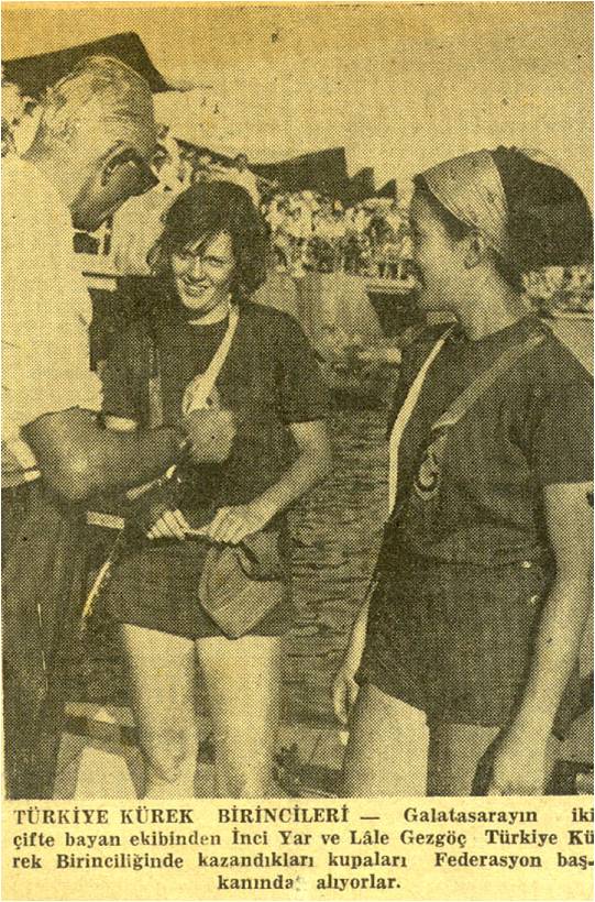 Resim: Hale Gezgöç ve İnci Yar, 1965 Türkiye Şampiyonu oldukları yarıştan sonra kupalarını alırken.