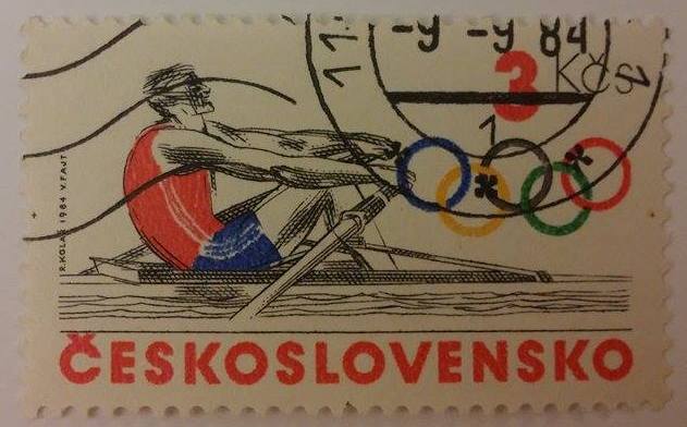 Sol altta, 1984 Los Angeles Olimpiyatları Kürek Yarışları anısına basılmış bir Çekoslovak pulu.