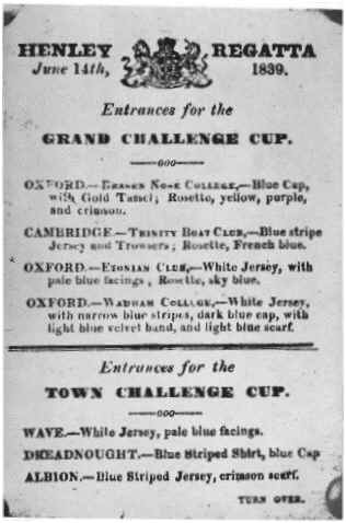 1827 Kolejler arası ilk yarışı Cambridge Üniversitesi düzenledi, Head of the River yarışını Trintiy Koleji kazandı.